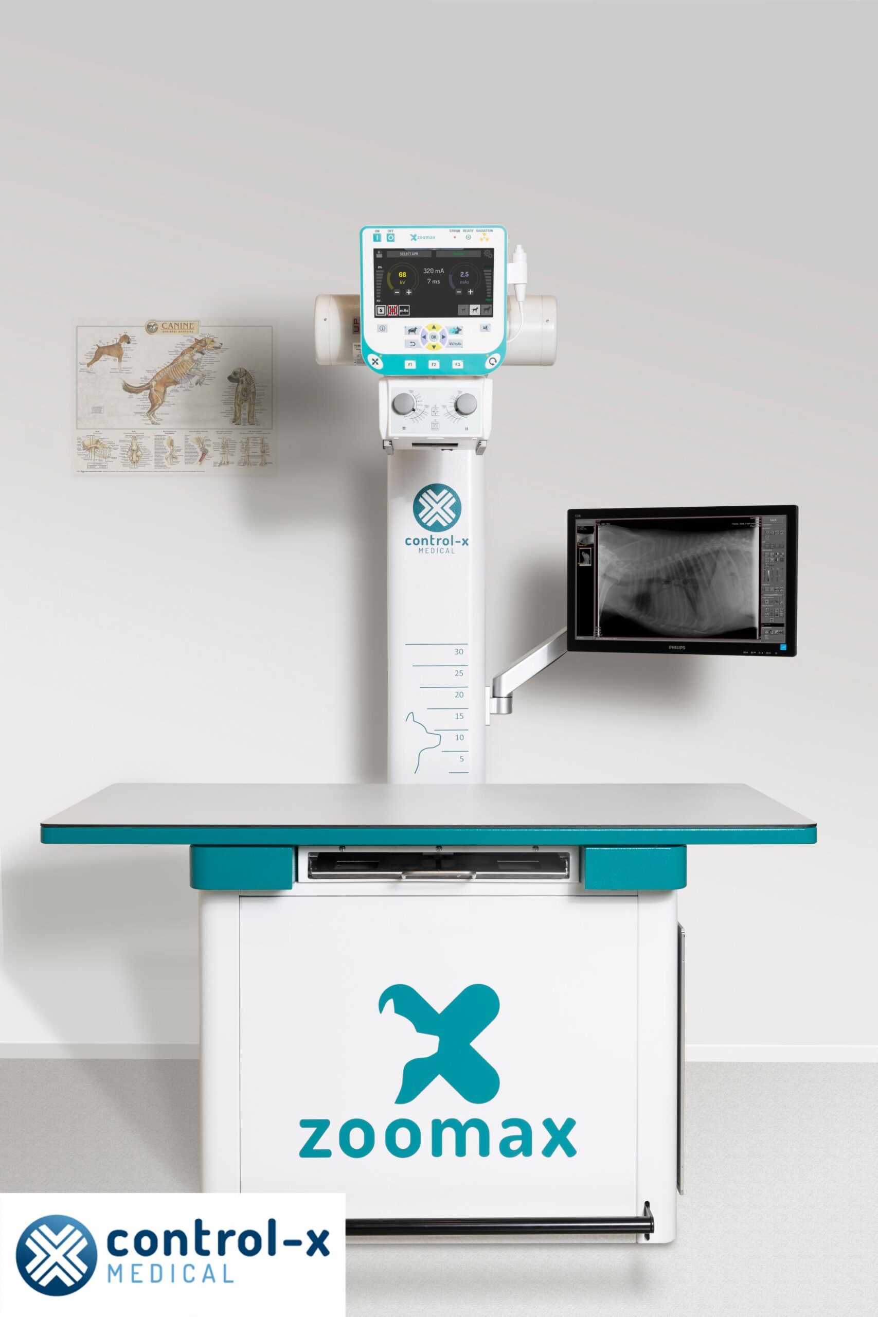 ZooMax 2 to najnowszy weterynaryjny system RTG firmy Control-X Medical, zaprojektowany z myślą o niezawodności, trwałości i wszechstronności zastosowań. Przemyślana konstrukcja, nowoczesne rozwiązania techniczne oraz solidne wykonanie sprawiają, że system spełnia wysokie wymagania codziennej pracy w praktykach i klinikach weterynaryjnych.